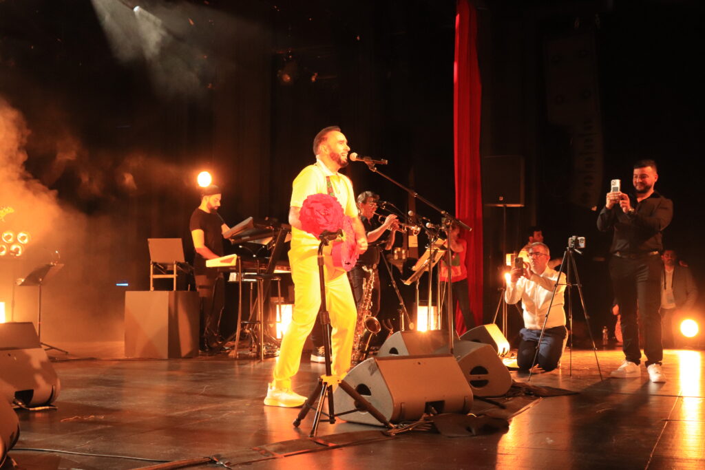Takfarinas c’est d’abord une voix à la fois chaleureuse, ample, capable de varier les registres. Son chant est expressif, puissant souvent très mélodique mais avec des passages plus rythmés, percussifs, ou avec des effets de “vous-y-yale”. Ses célèbres chansons comme Zaama, zaama, Way telha… ont quasiment mis le feu à cette salle remplie d’une jeunesse kabyle éprise de la belle chanson.