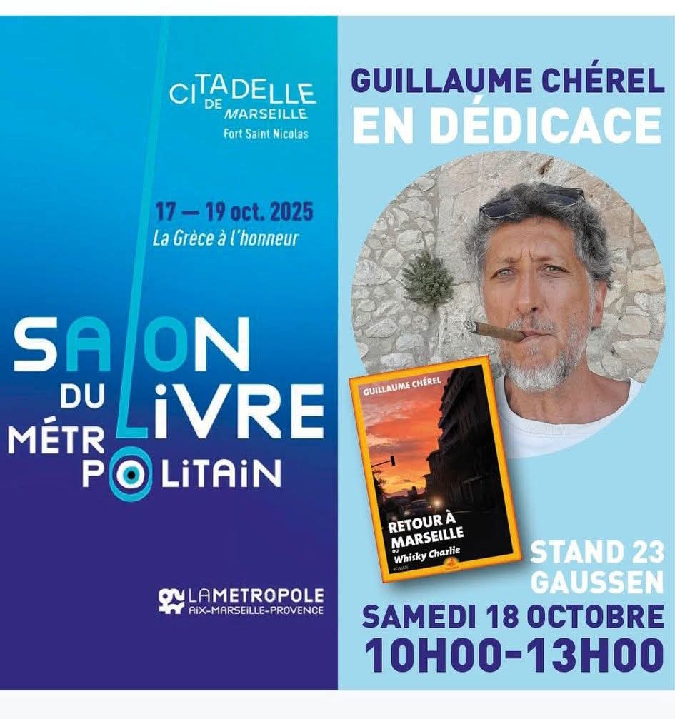 Salon du livre métropolitain du 17 au 19 octobre à la Citadelle du Fort Saint-Nicolas Marseille , où l’auteur dédicacera son livre le samedi 18 octobre de 10 h à 19 h.
