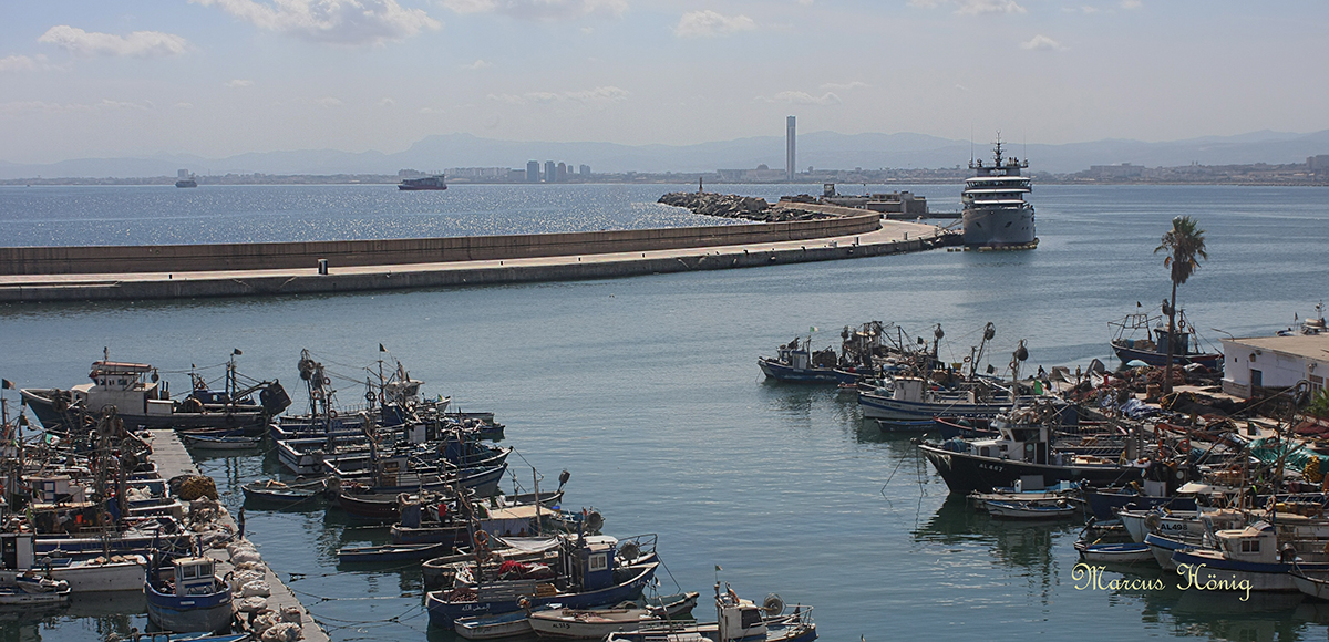 La baie d’Alger vue de la pêcherie offre une lumière exceptionnelle. Cette lumière semble être partout chez elle ici, en ville, sur l’eau, loin dans les terres.