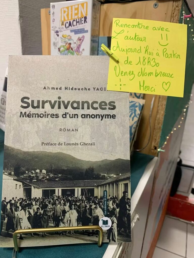 Fin de semaine, la librairie L’Île aux Mots Marseille a accueilli Ahmed Hidouche Yacine pour une rencontre centrée sur son essai Survivances – Mémoires d’un anonyme, paru le 19 mai 2025 par les Editions El Amir . L’auteur y a partagé son parcours intime et la genèse de son ouvrage, qui mêle souvenirs personnels et échos de l’Histoire algérienne.