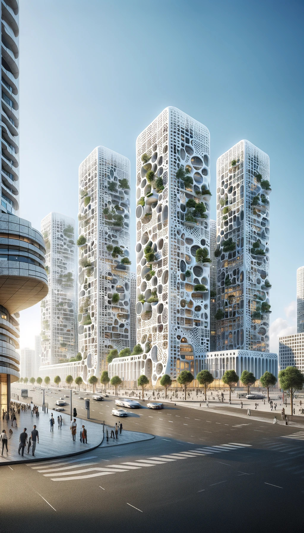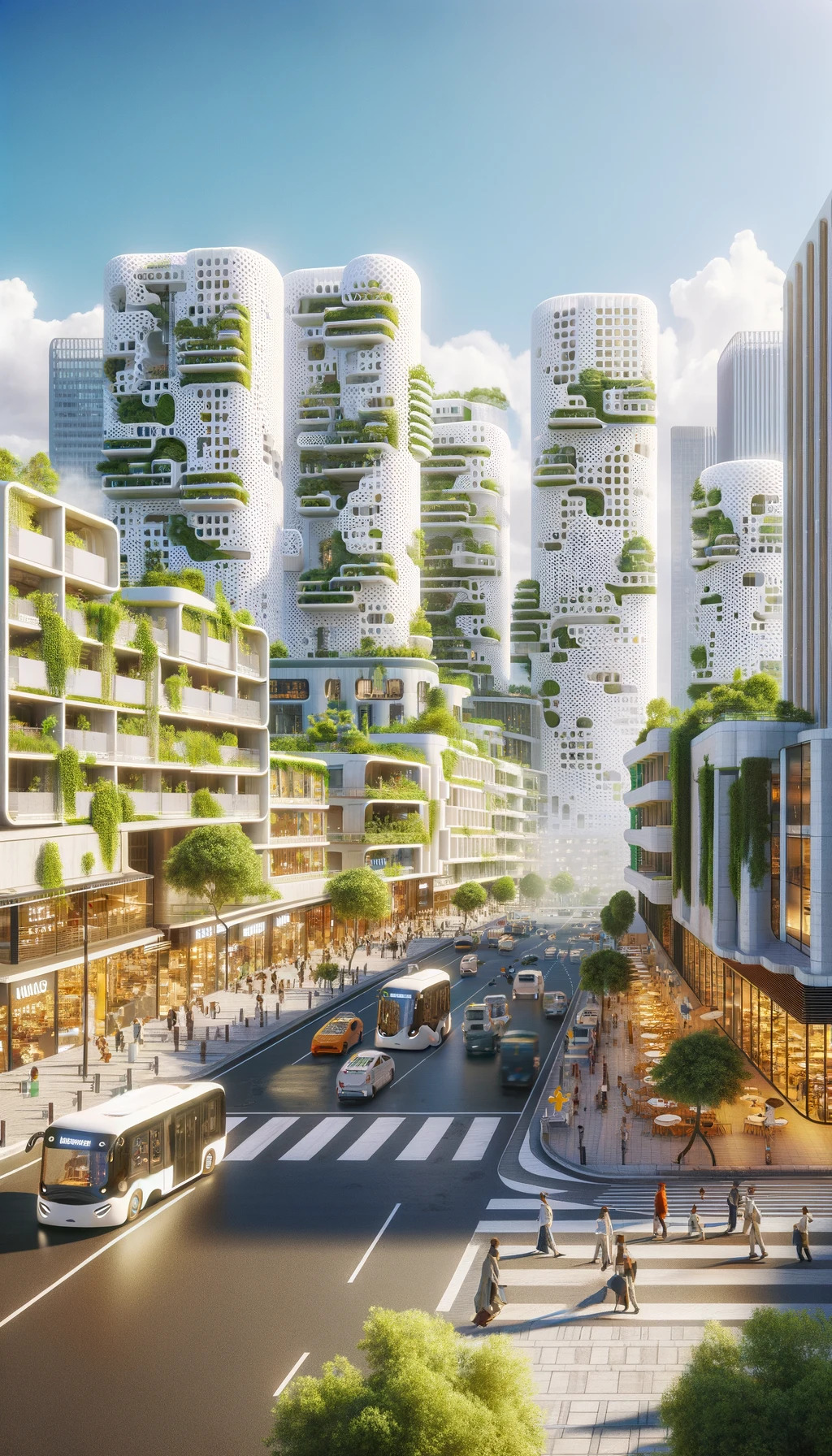 Au cœur de cette vision se trouvent les jardins verticaux, qui réinventent l’essence même de la façade urbaine. Ces espaces verts ne se limitent pas à embellir l’environnement bâti ; ils constituent des éléments vitaux d’un écosystème urbain résilient, contribuant significativement à la purification de l’air et à la création d’une biodiversité riche et variée au sein de la métropole.