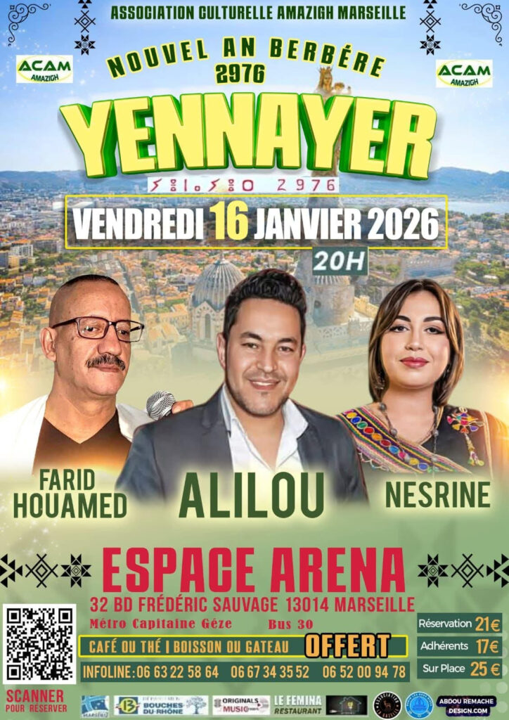Alors que l’année grégorienne vient à peine de s’ouvrir, la communauté amazighe célèbre l’entrée dans l’an 2976 de son calendrier ancestral. Ce vendredi 16 janvier, l’Association Culturelle Amazigh Marseille (ACAM Amazigh) organise à l’Espace Arena (14ᵉ arrondissement) une grande soirée dédiée à Yennayer, le Nouvel An berbère.